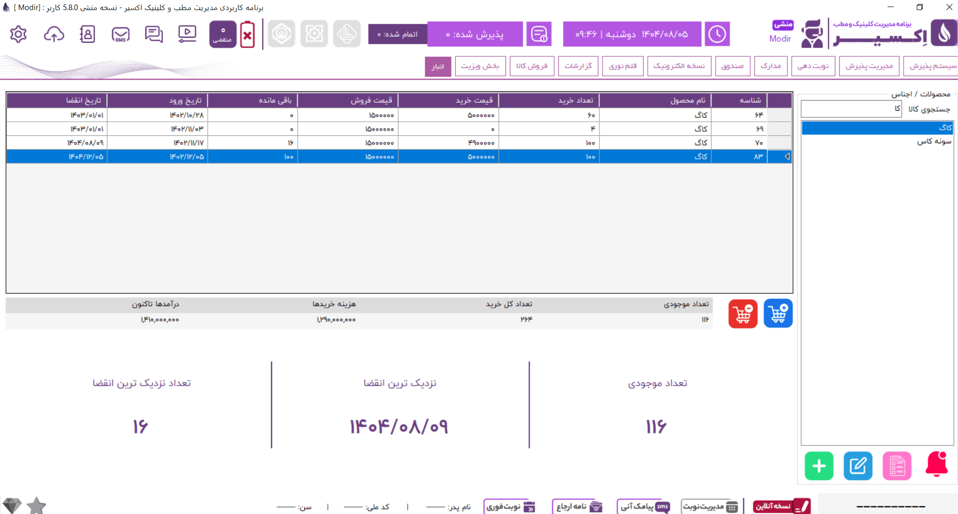از آنجا که ثبت موجودی کالاها و مبالغ خرید و فروش آنها و میزان ارائه آن ها به هر مراجعه کننده با استفاده از روش ثبت کاغذی فرآیندی بسیار وقت گیر می باشد شما پزشکان عزیز به راحتی می توانید با تهیه ماژول انبارداری و صندوق به این مهم دست پیدا کنید.